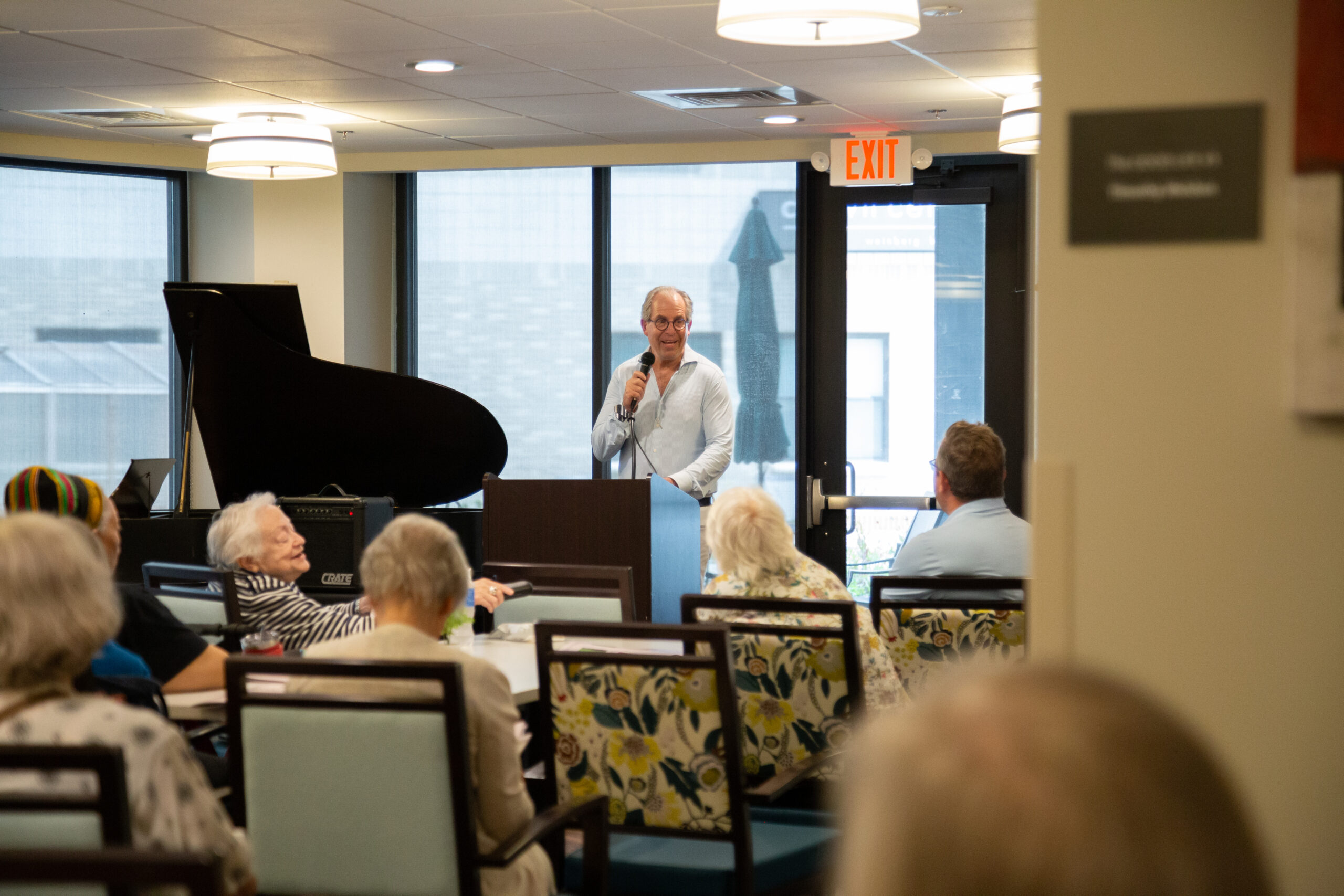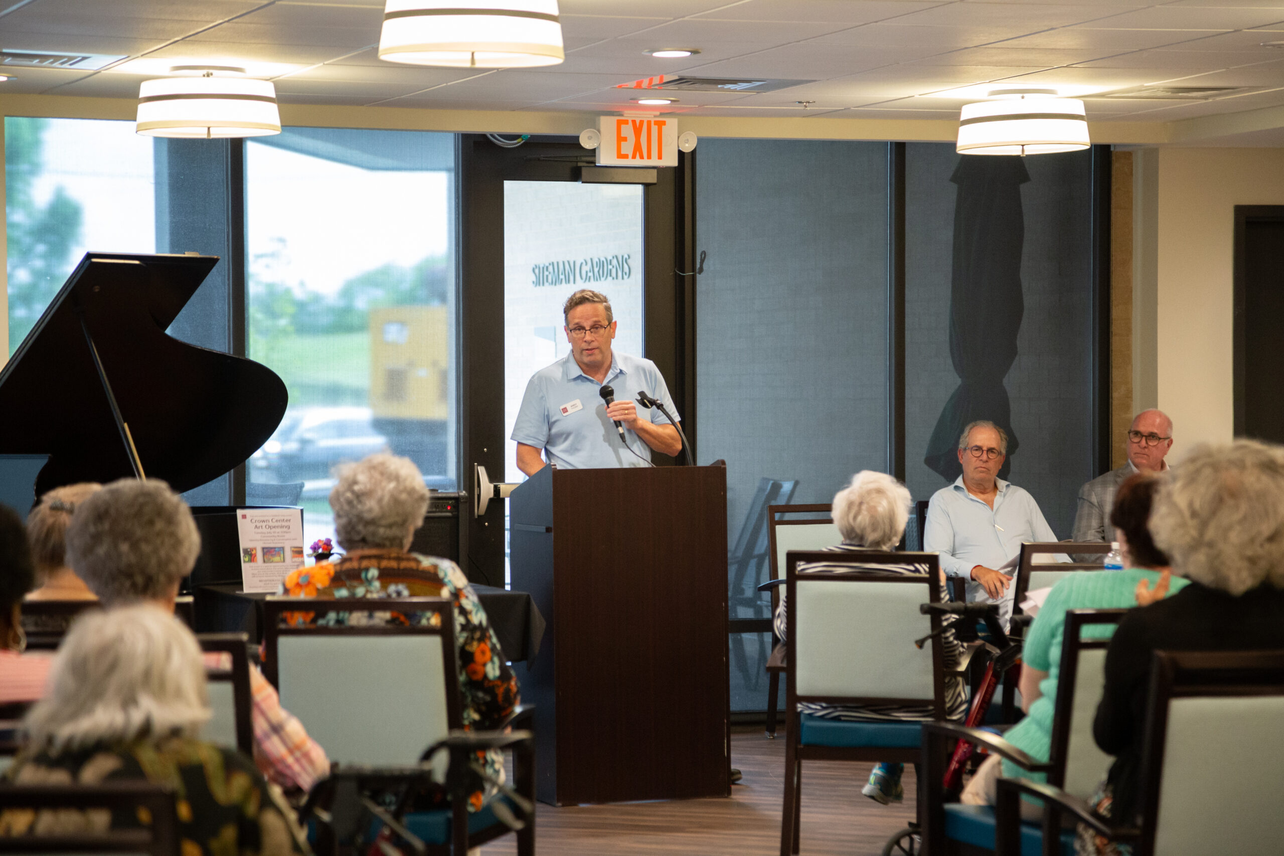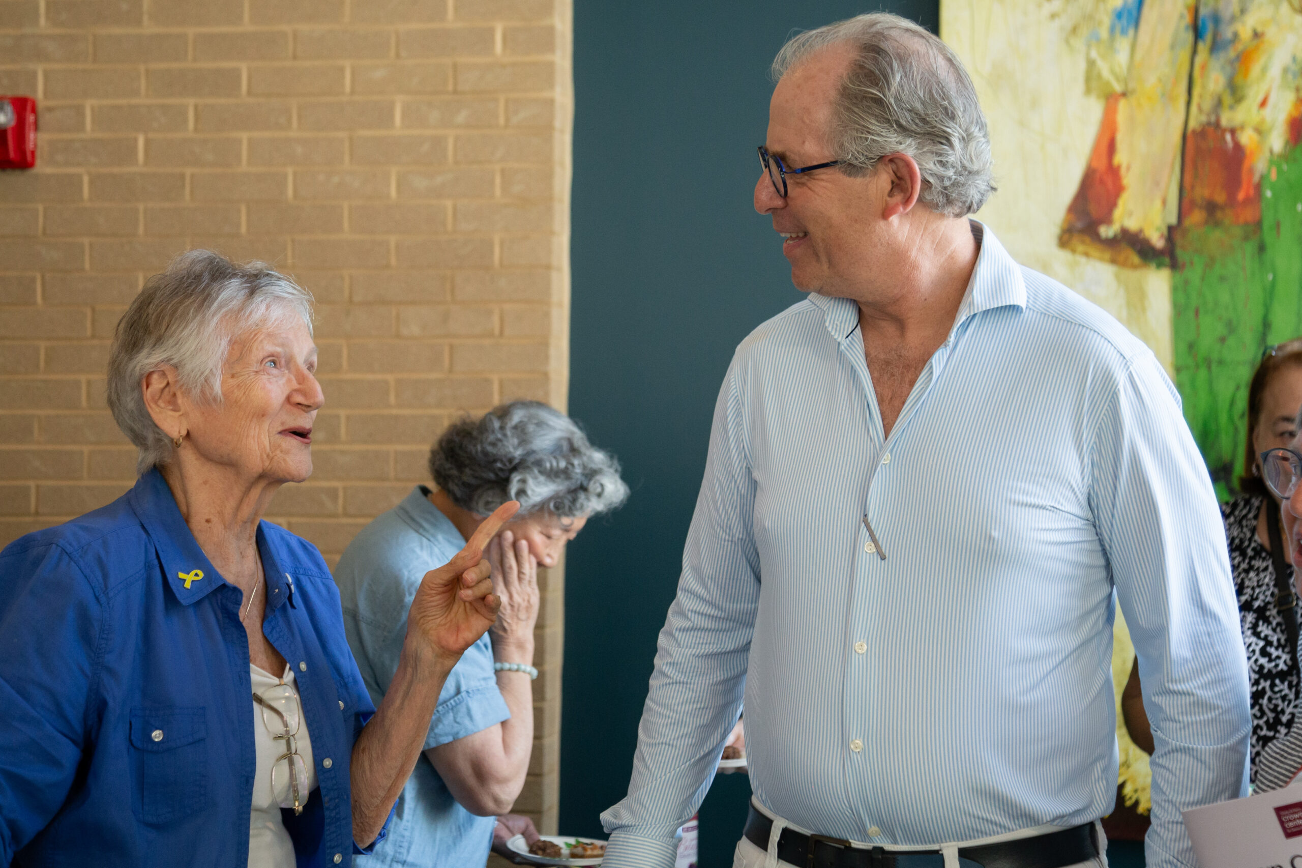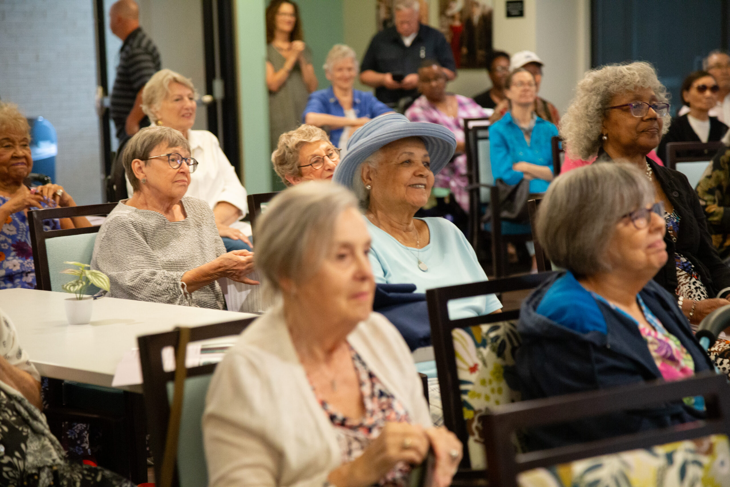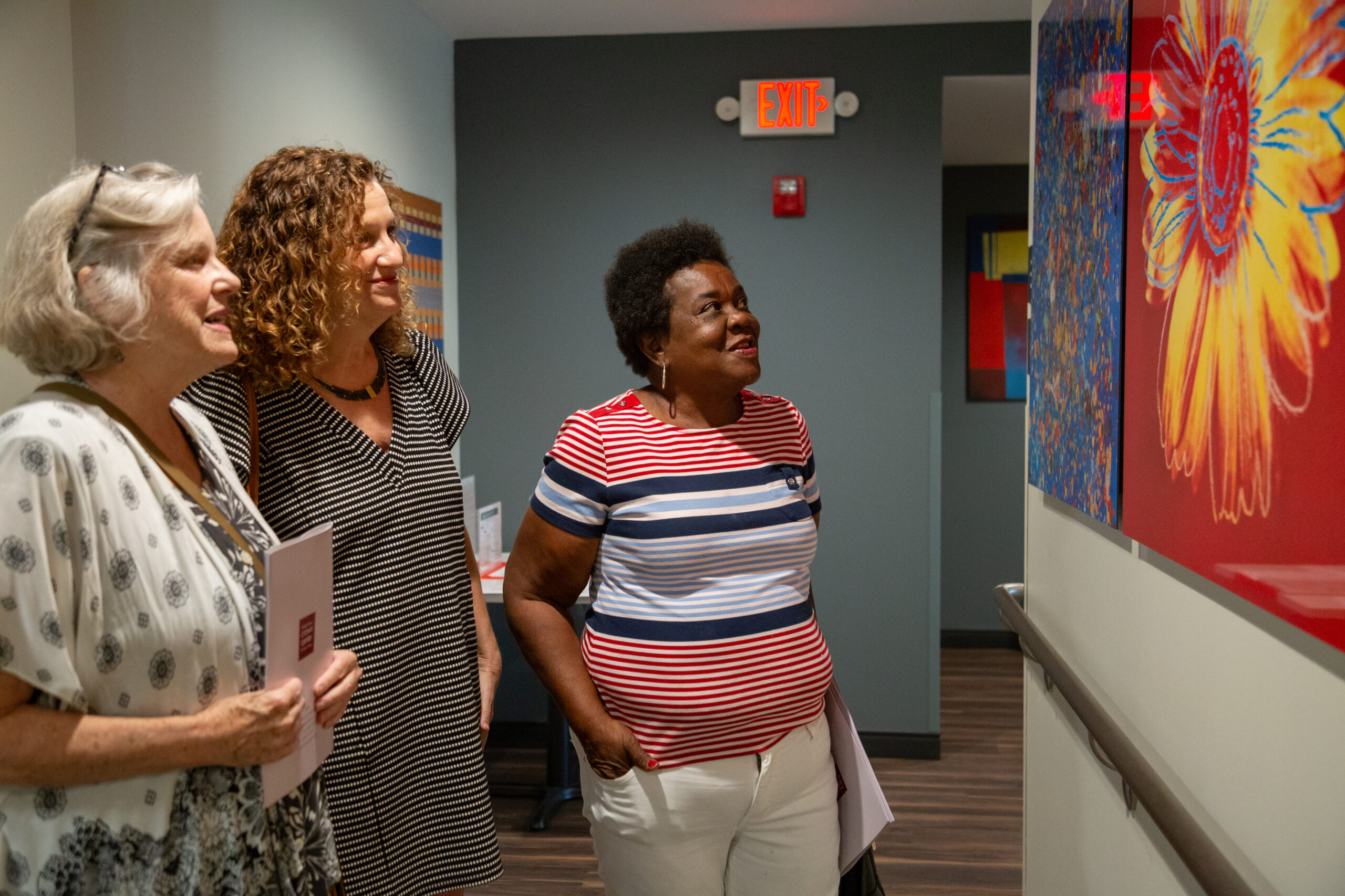 Following Michael Staenberg’s generous art donation, a special event was organized for residents to celebrate the new collection. Attendees had the chance to meet a local artist, enjoy refreshments, and explore the artwork with a custom-made guide. The event was well-attended by residents, staff, board members, and special guests.